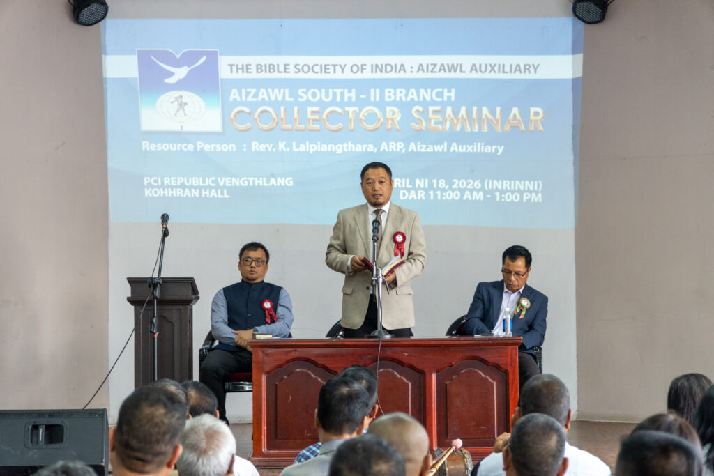 April ni 18, 2026 (Inrinni) hian BSI, Aizawl South II Branch Collector Seminar, Republic Vengthlang PCI kohhran Hall-ah hman a ni a. Upa H. Lalremruata, Asst. Secretary chu hruaitu niin Pi Lalhmangaihzuali, ITI Veng, PCI chu ášantu a ni a. Mi 132 zet an kal a ni. Recource Person Rev K.Lalpiangthara paper kan zirho a, a hlawkthlak hle a ni.