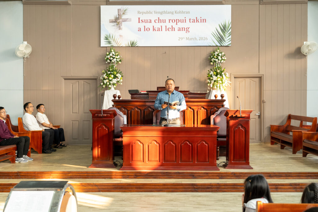 Vawiin ni 29.03.2026 (Pathianni) zing dar 6:30-ah kum danga kan tih angin hmun hnih atangin Biak In panin kawng kan zawh leh a. Field Veng leh Biak In Mual chuan chung ten Pu Runliana in kawt atanga zawh tanin Pu K. Lalnuntluanga, Asst. Leader, Primary Department in hun a hmang a, Tv. C. Lalremsiama, Zirtirtu, Intermediate Department-in au a hruai a ni. Mual Veng leh Biak In Mual chuan hnuai ten Pitarte Tlang kawt atanga zawh tanin Pu Christopher Ramnunmawia, Asst. Leader, Sacrament Department in hun a hmang a, Pu Lalremsanga, Zirtirtu, Intermediate Department-in au a hruaia ni. Biak Inah Pu Robert Vanlalhruaia, Superintendent, NPSS in hun hmangin Upa Lalhmunsangsa, Superintendent, Sunday School-in tawngtaiin min tin a ni.